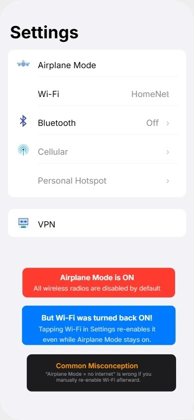 This mistake catches a lot of people off guard and I completely understand why. The logic seems to make sense at first. If WiFi calling works over the internet, surely it should work in Airplane Mode with WiFi turned on?