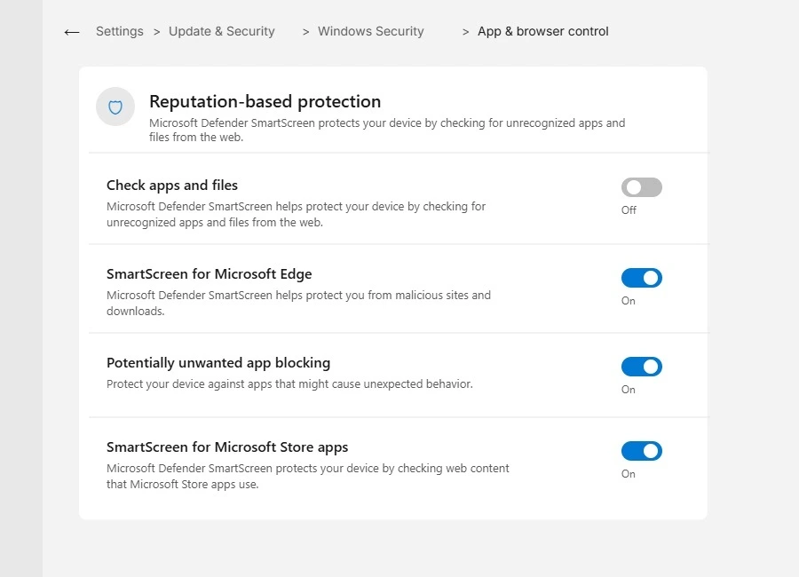 Windows 11, particularly after the 24H2 update, introduced stricter rules around which executable files it trusts. Steam’s installer may now get flagged even though it ran perfectly on Windows 10 or on an earlier version of Windows 11. The file itself has not changed but Windows is now holding it to a higher standard. Turning off Reputation Based Protection in Windows Security is the fastest fix for this specific situation and resolves it for most people immediately
