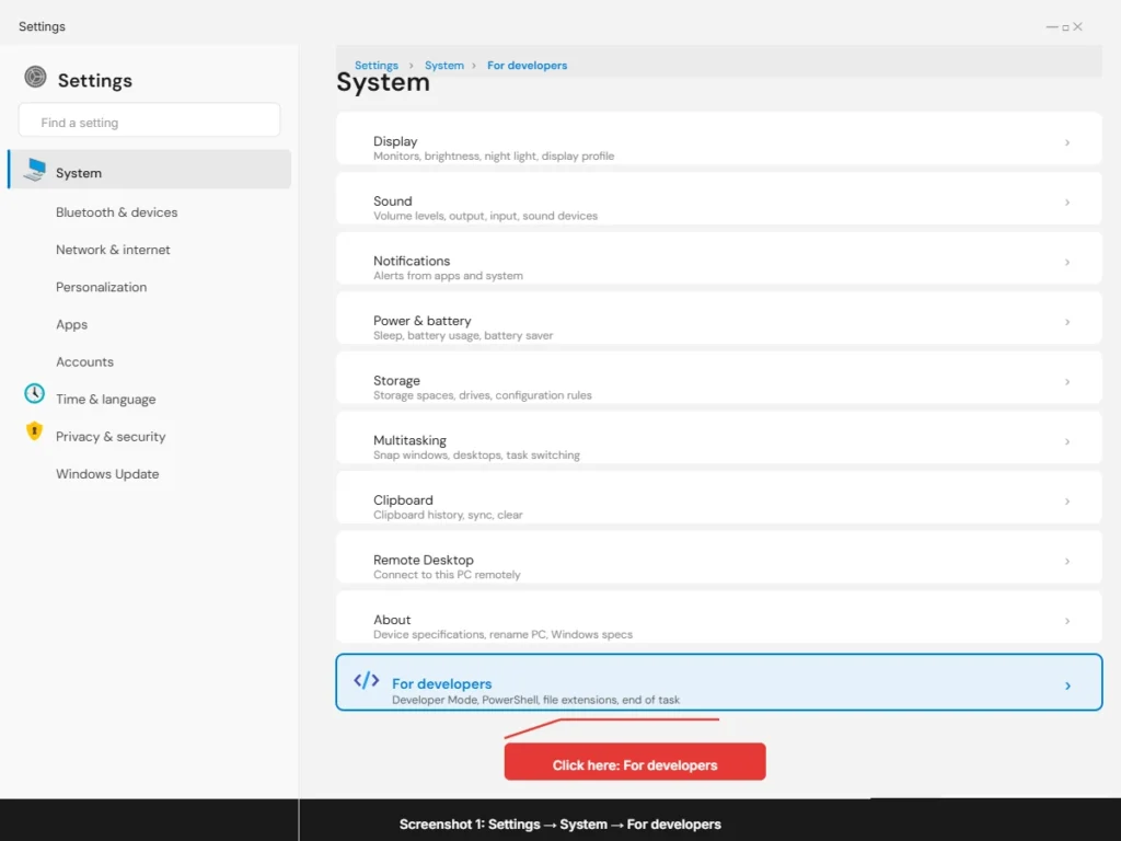 If Fix 1 did not fully resolve the issue for you, or if you want to apply an additional layer of permission alongside it, enabling Developer Mode is the next step I recommend. This fix works independently from the Reputation-Based Protection change, which means it targets a slightly different part of the Windows 11 permission system.