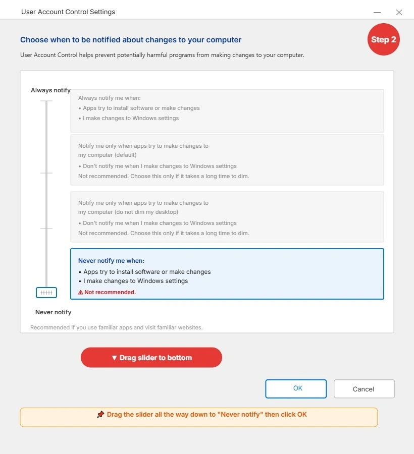 If you toggle the setting off and immediately try to run Steam without restarting, Windows is still running under the old rules from your previous session. You will see the same error and assume the fix failed. It did not fail. You just need to let Windows reload its settings through a proper restart.